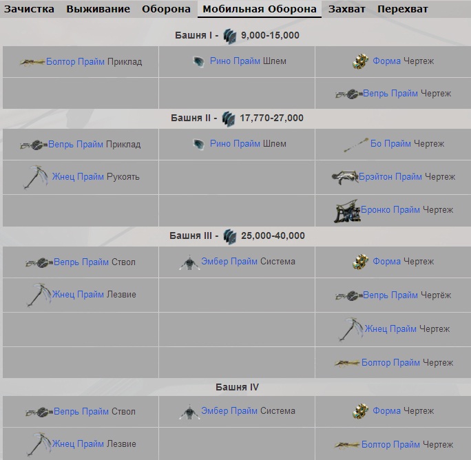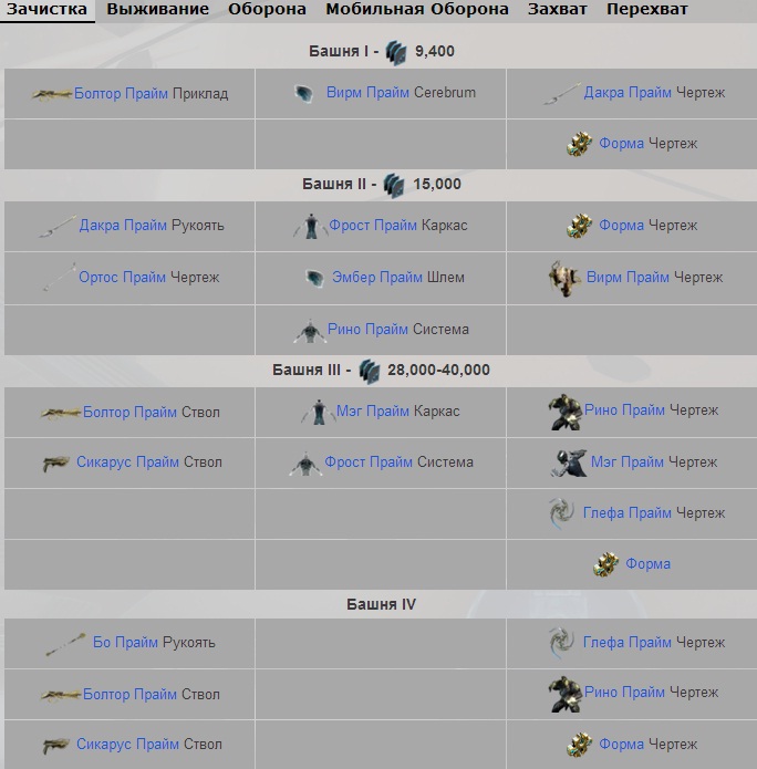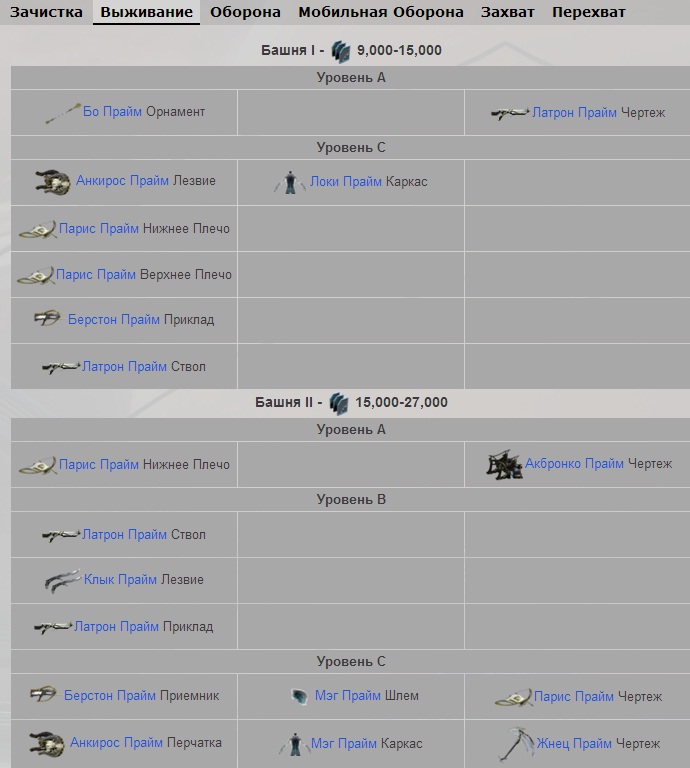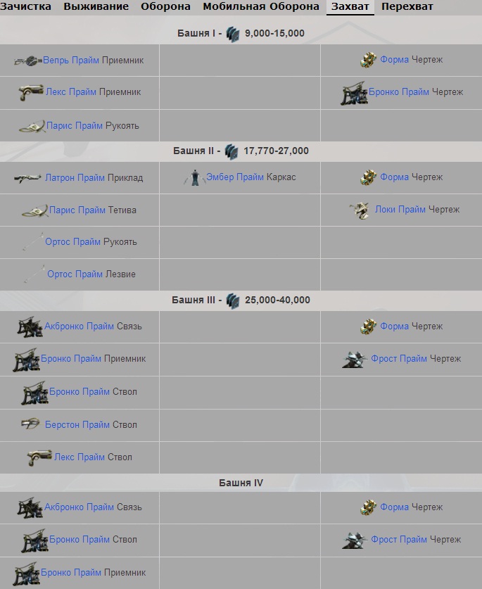 До обновы 14.5 лично сам долгое время бегал по различным башням, все дропается там где и нужно, ничего лишнего. Пока что таблица актуальна.